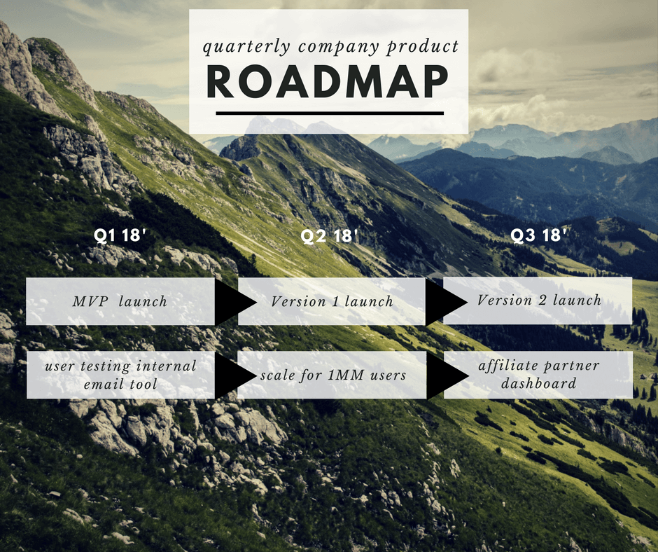 A product roadmap outlines the vision for your product over time. They might display broad, quarterly goals like this one: