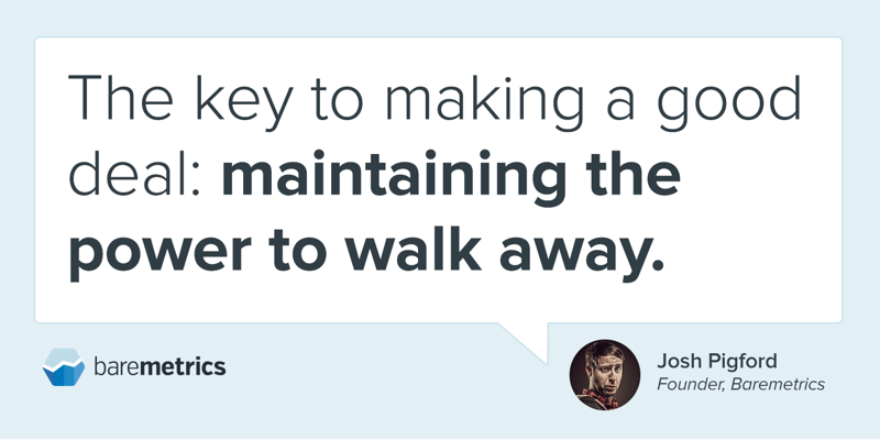 At first I dogmatically turned down all the calls. I was laser focused on building Baremetrics and I wasn’t about to let some sleazy Silicon Valley used car salesman try to force my hand.