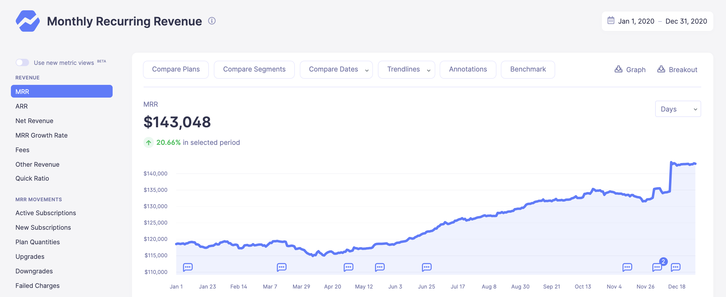 In other words, it averages MRR across all plans that this company offers. If some products are doing much better than others, this aggregate data won’t immediately reveal it.