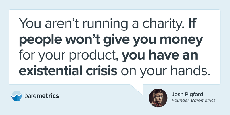 You aren’t running a charity. You’re running a business. If people won’t give you money for your product, you have an existential crisis on your hands and the longer you wait to find out, the worse it’ll hurt.