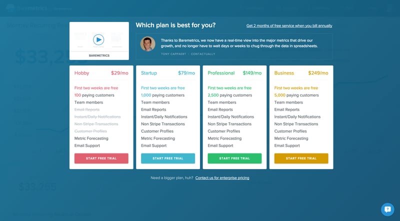When I first built and launched Baremetrics over two years ago, I charged from day 1. No free plan and no trial. You signed up with a credit card and were charged real actual money. Not happy? No sweat, we had a 60 day money back guarantee.