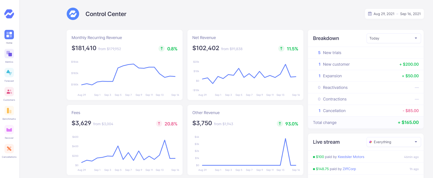 Get deep insights into your company’s MRR, churn and other vital metrics for your SaaS business.