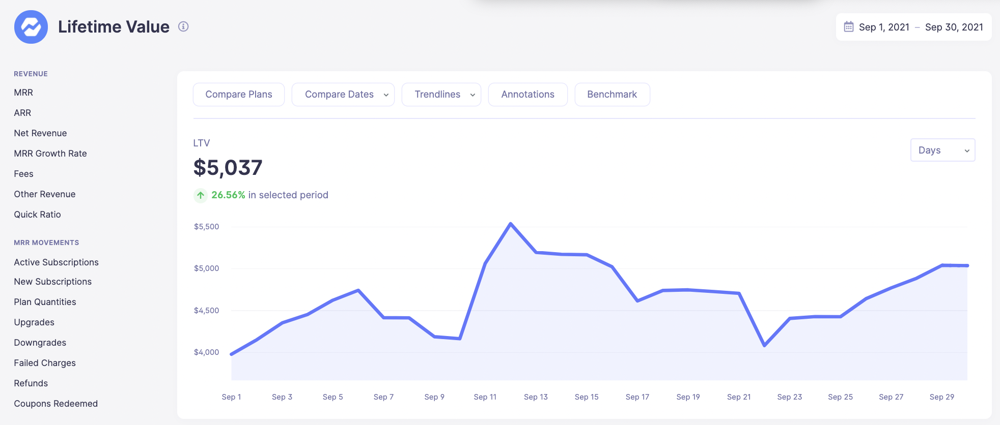 Since pricing optimization means that you probably won’t charge the same amount for your app forever, your customers can jump between different tiers, and there might be add-ons or usage pricing, among many other issues, calculating an accurate ARPU value by hand, and therefore an accurate LTV, is impossible.