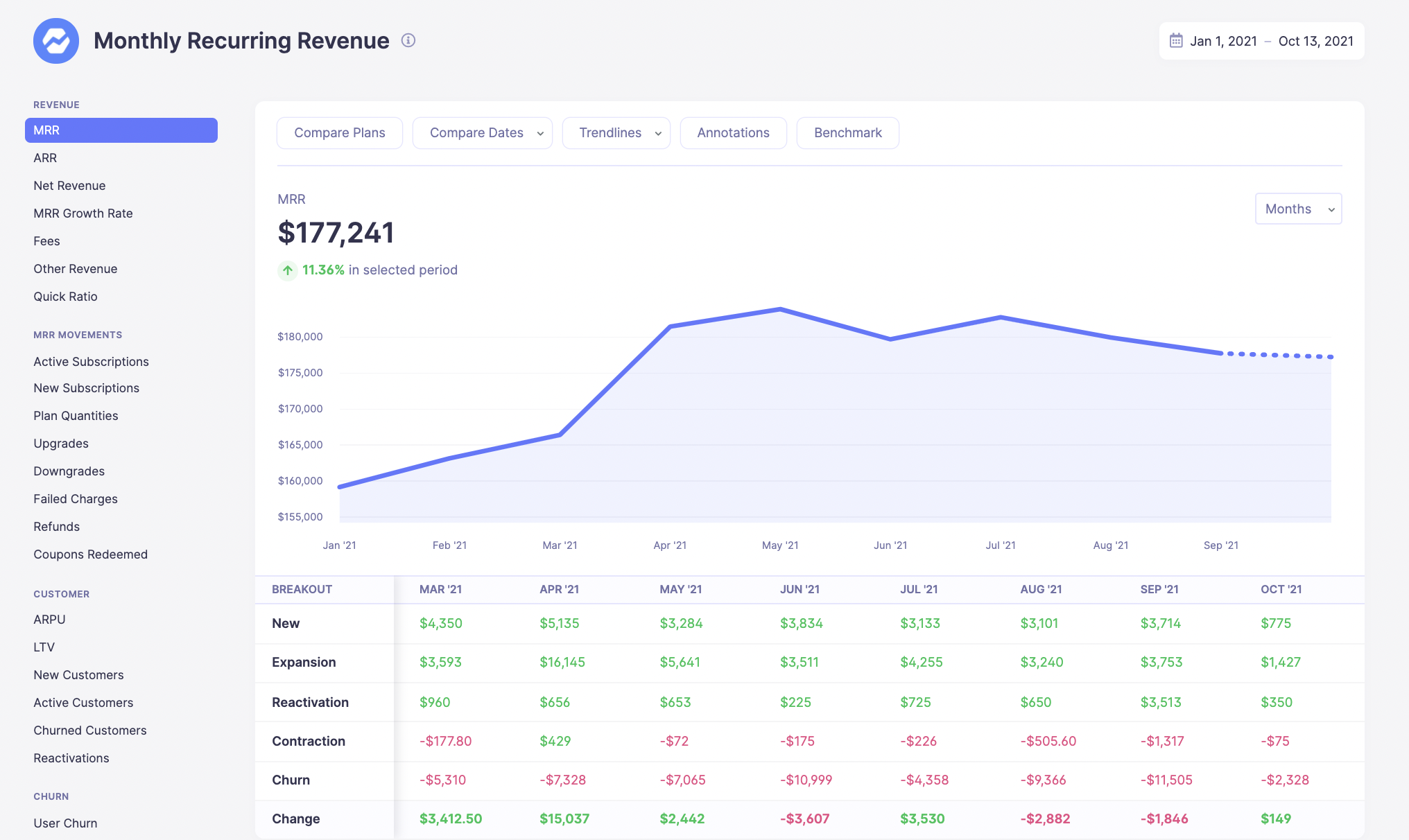 MRR, net new MRR, and all of the component MRR types are critical metrics to track for every business. To maximize growth, you must see the drivers of your business growth and anything dragging growth down.