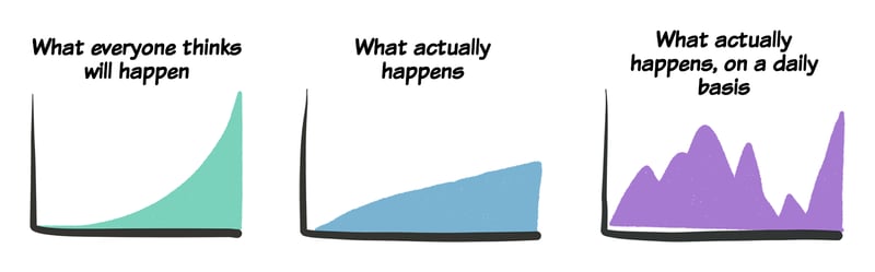 Right out of the gate, you almost certainly have unrealistic expectations. Every one of us is influenced in some way by hype and sensationalism. Mix the tech news cycle with a healthy dose of overoptimism and you’ll find yourself believing you’ll be on some record-breaking growth trajectory “any day now”.