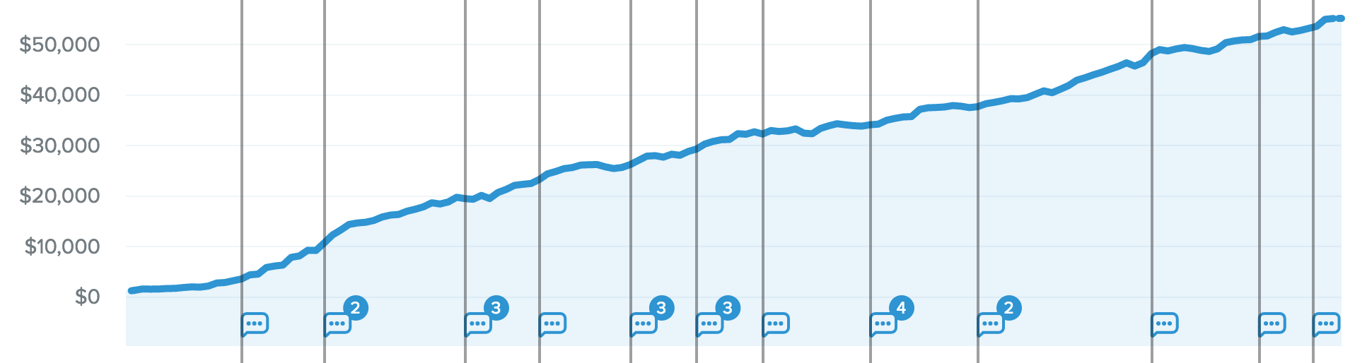 If you throw a trend line over the graph, it’s just the most boring thing you’ve ever seen. Revenue continues to increase month-over-month, but there’s no single point where “everything changed”.