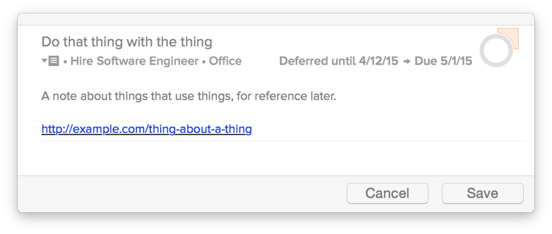 - Defer date — When to hide the task until (see note below)