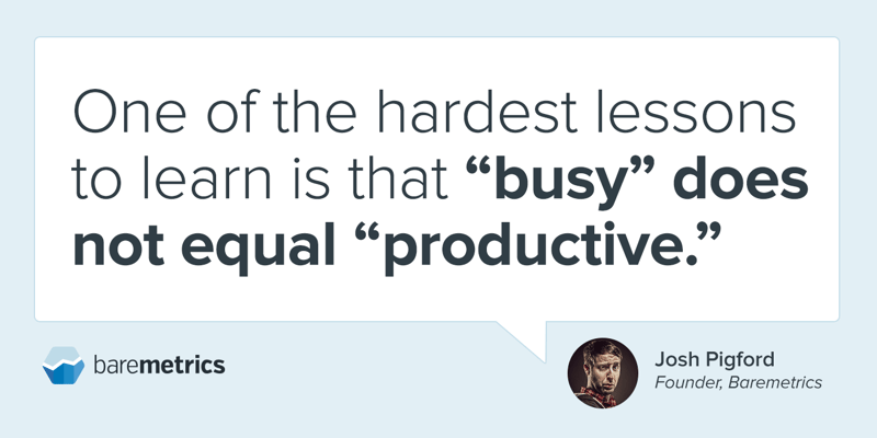 As a Founder, you’ve got your hand in everything imaginable, from legal paperwork to hiring to product management to support and everything in between. You’re pulled in every direction from everyone who’s got your contact info and you feel obligated to chase every rabbit you think of. But one of the hardest lessons to learn is that “busy” does not equal “productive.”
