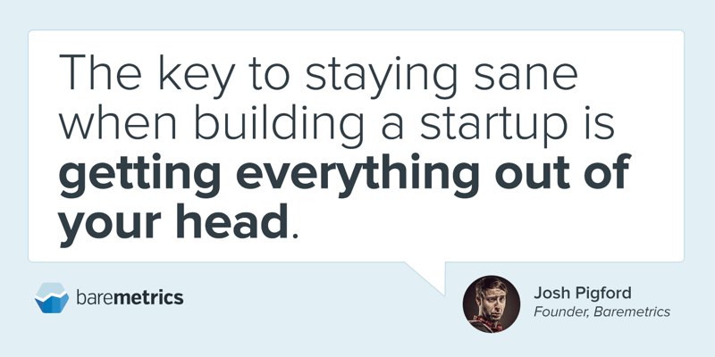 The key to staying sane when building a startup is getting everything out of your head. You will forget things. Every single day. Then you’ll drive yourself crazy trying to remember the thing that you forgot. Stop that. Put it in OmniFocus the second you think of it, and then never think about it again until it’s time to do it.