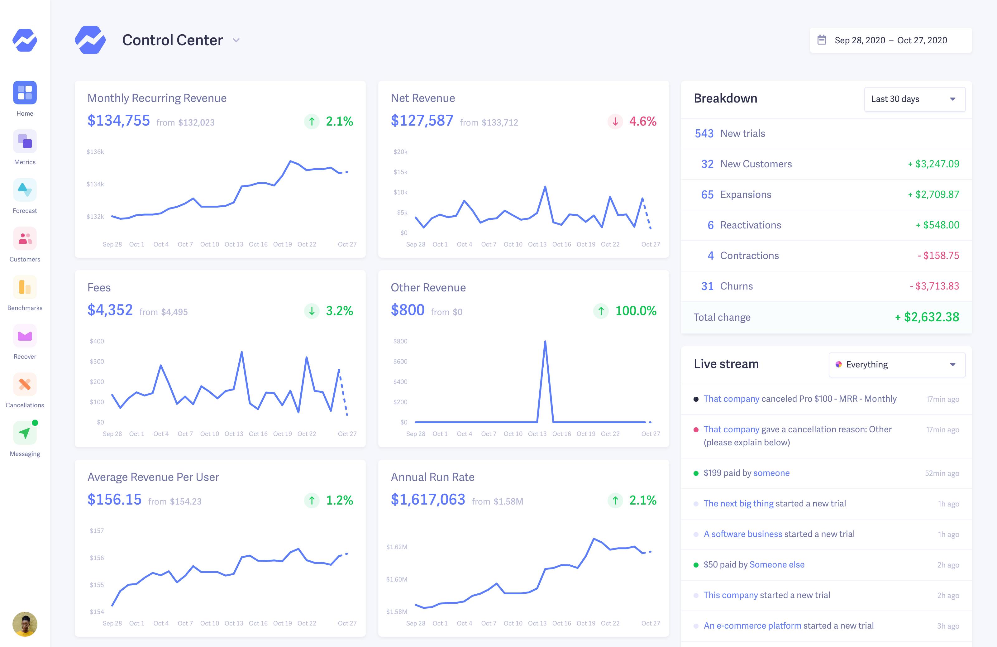 This means that in addition to our forecasting features, we also can provide revenue data and analysis, insights into cancellations and trials, and even features designed to prevent missed payments before they happen.