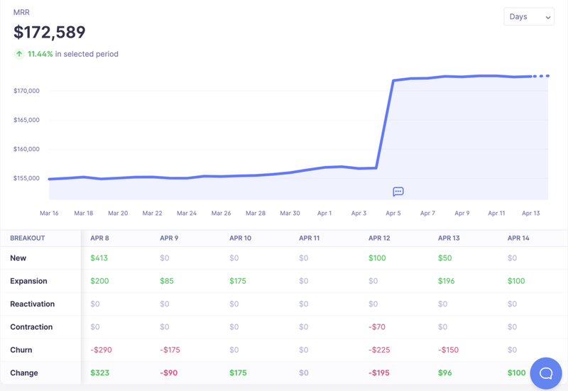ビジネスの成長させたいと思うならエクスパンションMRRや解約率の追跡は不可欠です。Baremetricsを利用すれば、決済プロバイダーと連携するだけですぐに確認することができます。